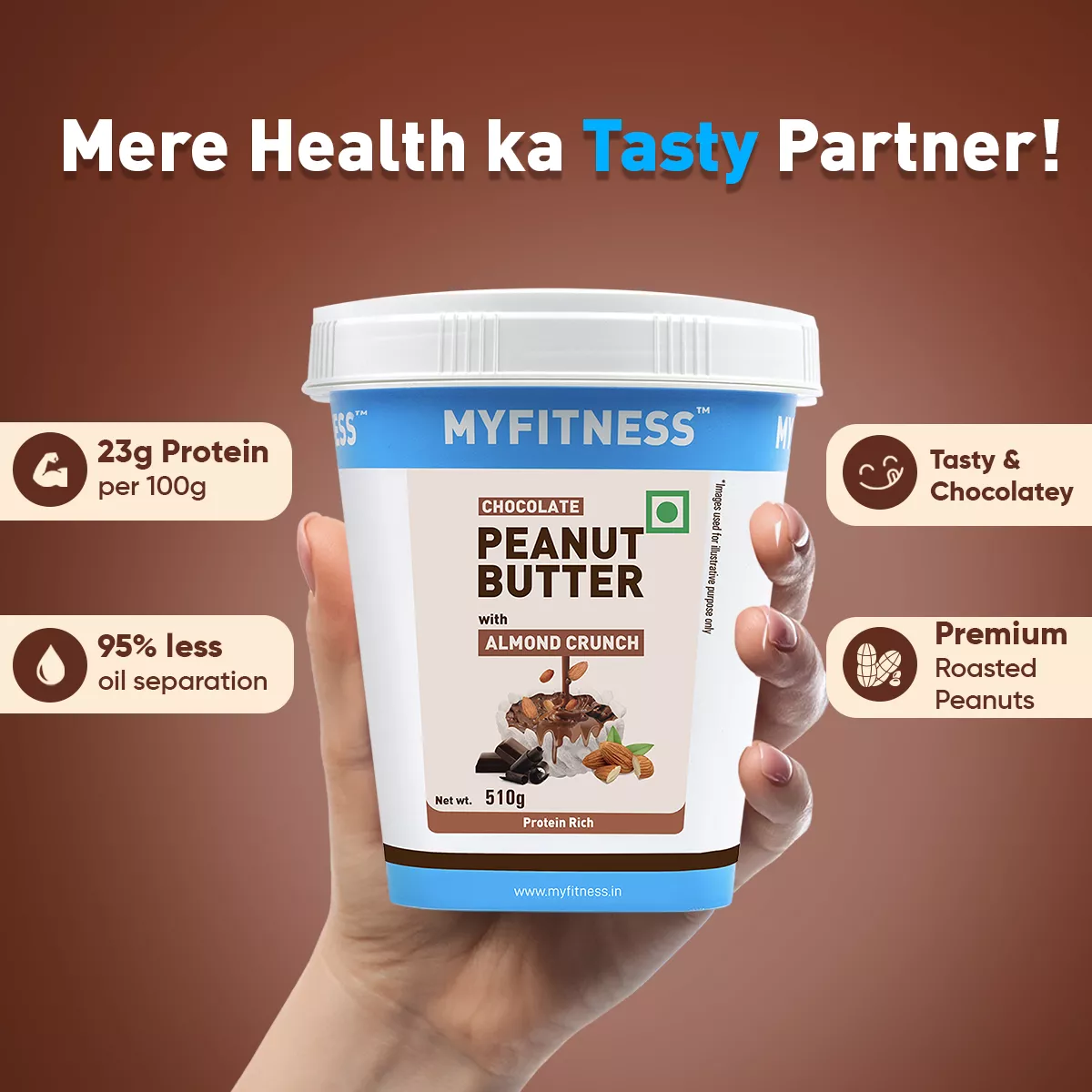 Say goodbye to artificial additives! MyFitness Chocolate Peanut Butter with Almond Crunch made with high-quality ingredients which makes it a healthier alternative than other store bought spreads. So what are you waiting for? Elevate your snacking game today.
